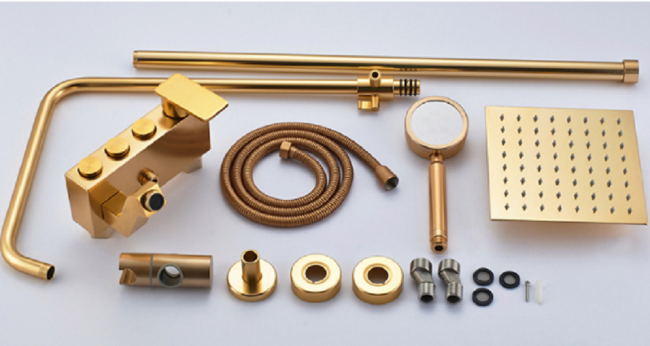 Bộ sen cây tắm nóng lạnh vàng vàng ánh kim 3 nút cao cấp GIORMANI SC05