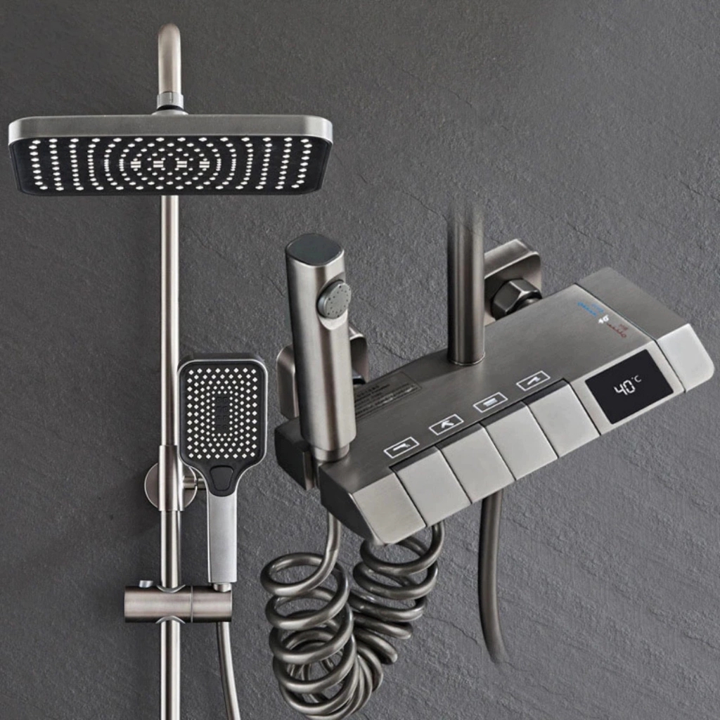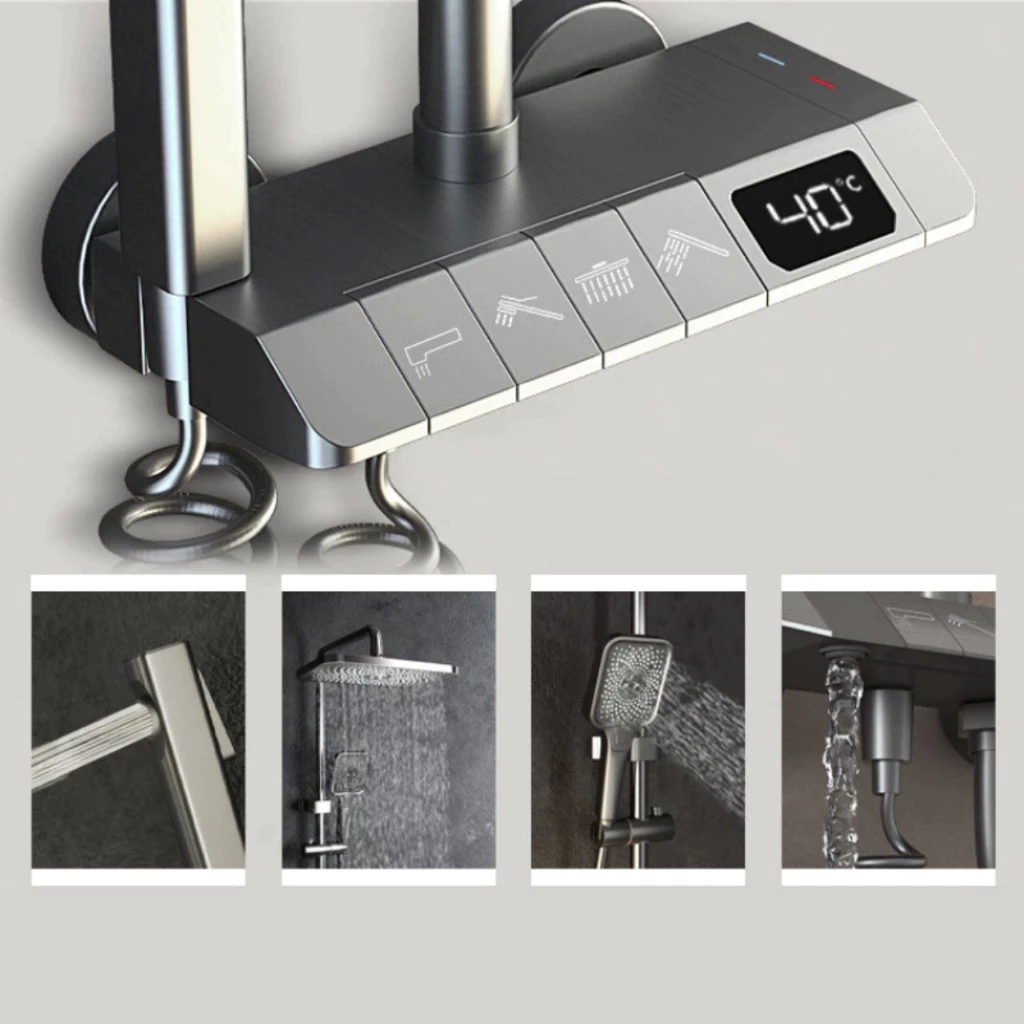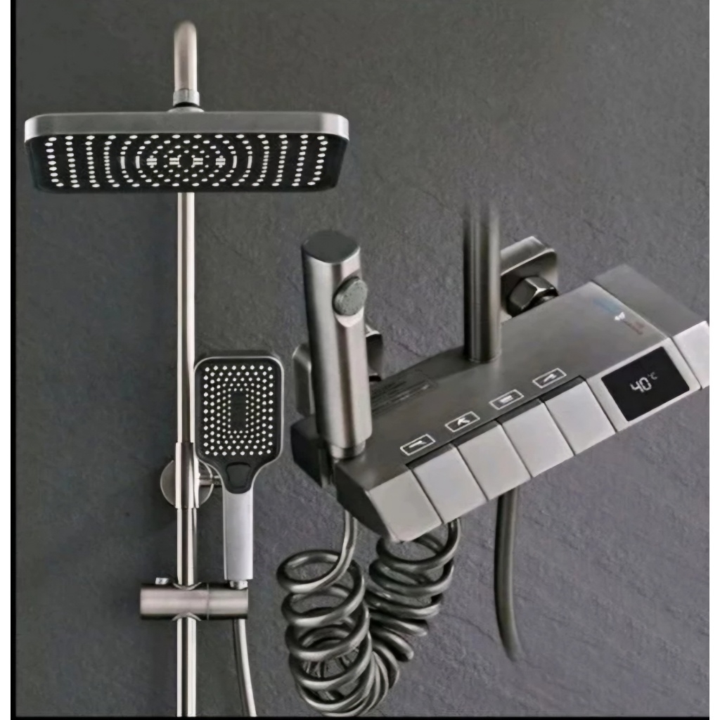Bộ sen cây tắm phím đàn nóng lạnh mạ màu titan cao cấp có đèn led hiển thị nhiệt độ GIORMANI SC39