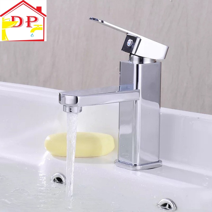 Vòi lavabo, vòi rửa mặt GIORMANI nóng lạnh kiểu vuông SNL16 kèm đôi dây cấp inox